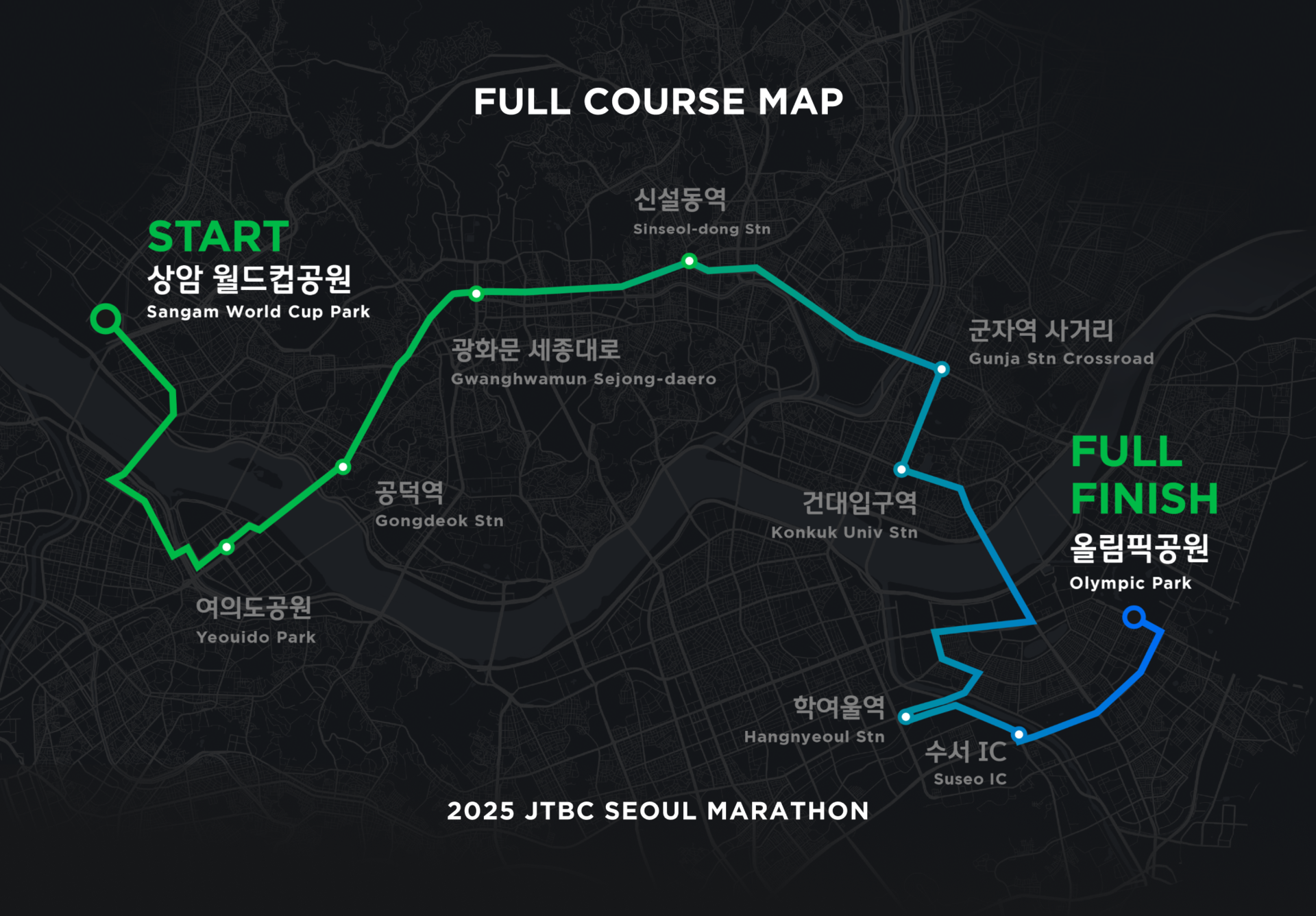 * 상기 코스도는 2025 JTBC 서울마라톤 코스이며, 대회 사정상 변경될 수 있습니다.